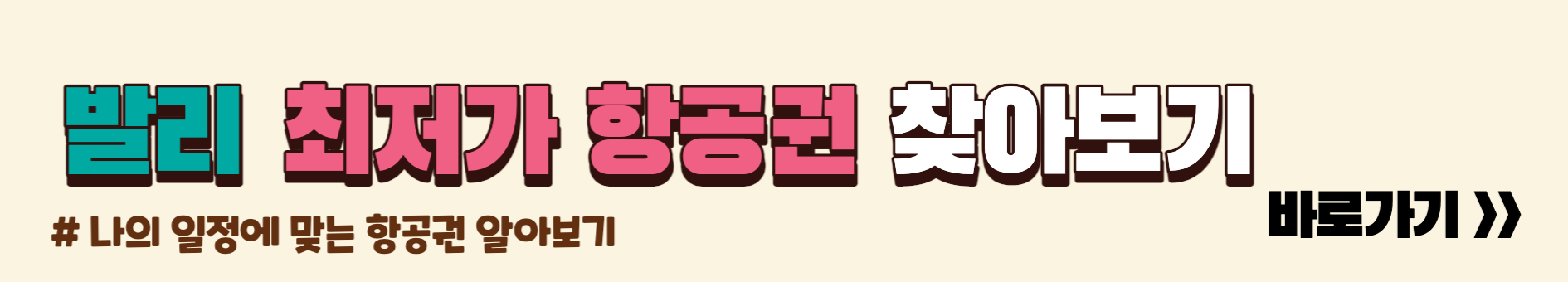 발리 여행을 계획하고 있다면, 우선 항공권을 먼저 알아봐야합니다. 최저가 항공권을 찾는게 정말 쉽지 않습니다. 아래 링크를 통해 최저가 항공권 찾아보세요.